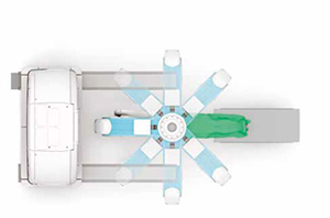 Незважаючи на те, що КТ можна повністю віддалити від робочого місця, п'ятиосьова технологія Alphenix забезпечує більш швидке та краще розташування С-арки від голови до п’ят.