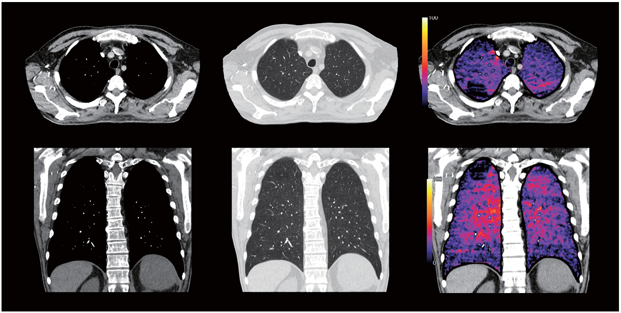 Додавання йодних карт до легеневої КТ-ангіографії дозволяє оцінити розподіл контрастної речовини в легеневій паренхімі. SURESubtraction Lung може автоматично створювати йодні карти під час кожного рутинного легеневого обстеження з контрастуванням.