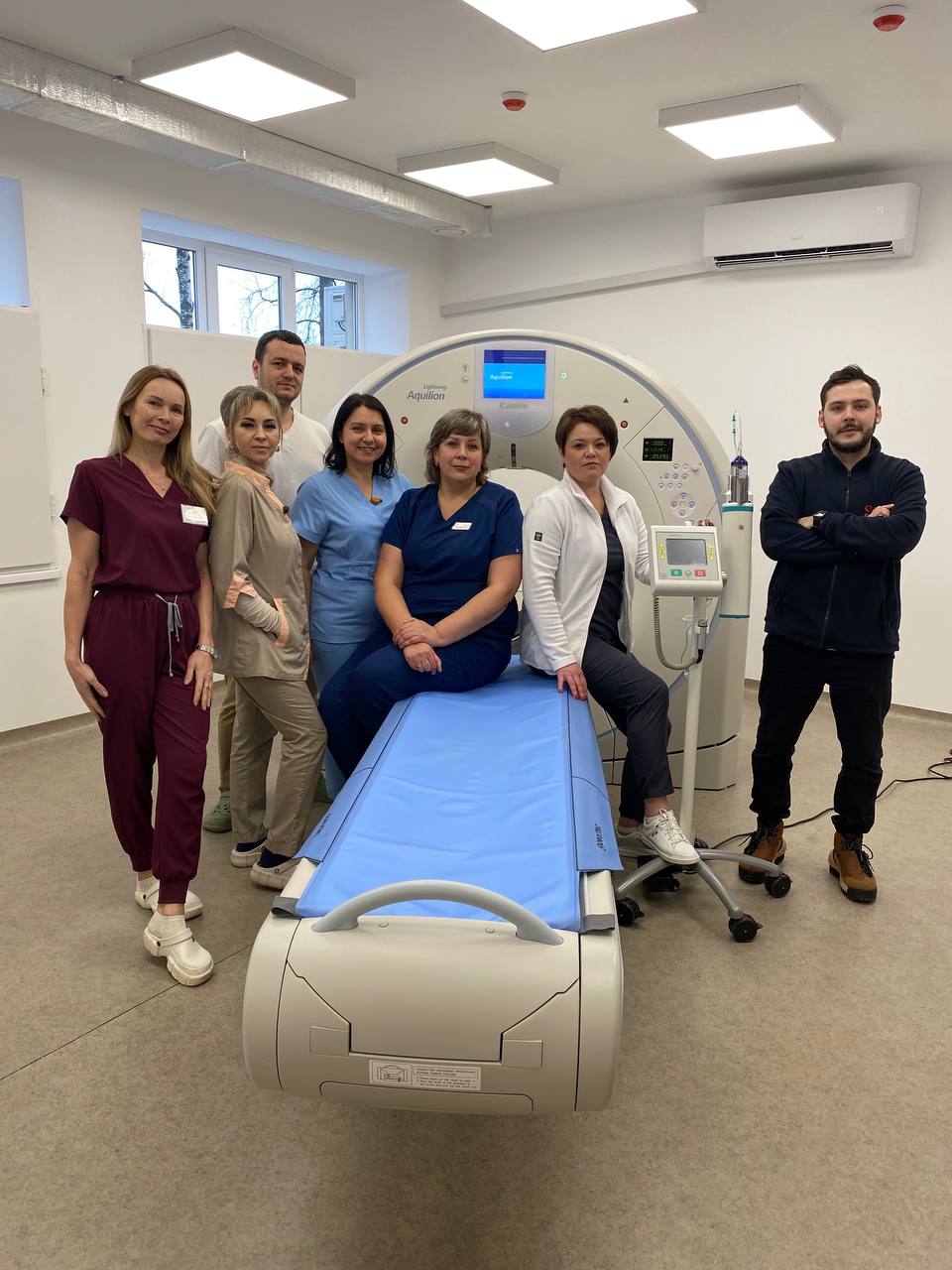 Навчання медичного персоналу проходило на сучасному 32-х зрізовому комп'ютерному томографі Aquilion Lightning від японського виробника Canon Medical.