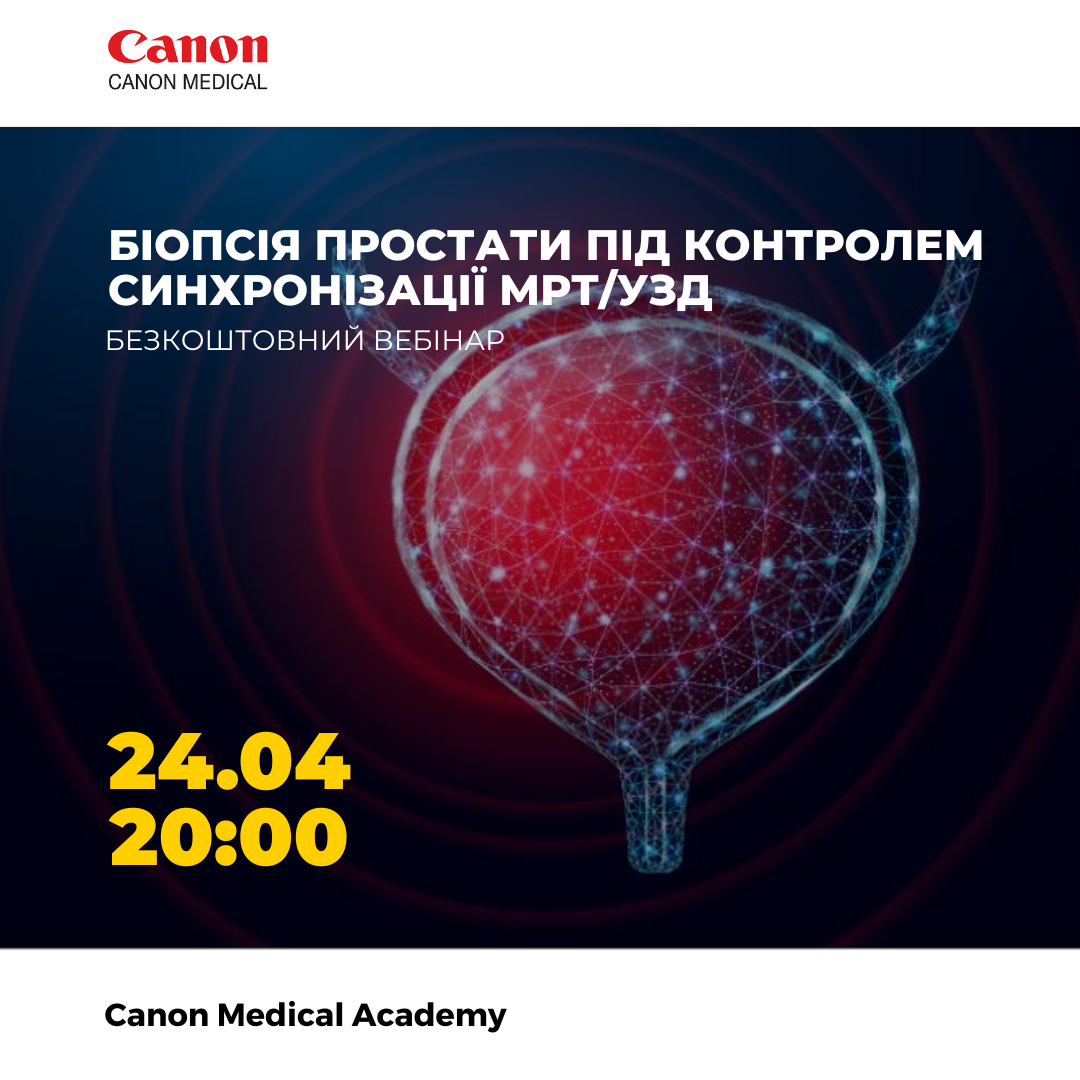 Біопсія простати під контролем синхронізації МРТ/УЗД | Безкоштовний вебінар від Canon Medical 21.04.2025 LEARN MORE