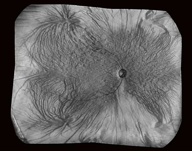 Частотно-модульоване джерело Xephilio OCT-S1 дозволяє отримати широкопольне ОКТ зображення 23 x 20 мм, що може бути дуже корисним для спостереження за товщиною сітківкі при відшаруванні сітківки або пігментного ретиніту. Мозаїчне зображення дозволить створити неймовірне широкопольне ОКТ зображення 31 x 27 мм.