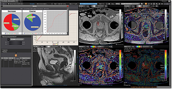 Спеціальні програми Olea SphereTM для аналізу передміхурової залози включають в себе розширені можливості для оцінки дифузії та якісної оцінки перфузії. Також пропонують ефективний мультипараметричний аналіз усіх доступних послідовностей для візуалізації простати. В додатках реалізовано аналіз кінетики та кількісних даних на основі надійних математичних моделей. Програми передміхурової залози включають звіт PI-RADS® 2 для покращення виявлення, характеристики та вірогідності встановлення діагнозу раку простати. Цей програмний пакет стандартизує виклад протоколів опису, а також вказує рівень підозри або ризик виникнення клінічно значущих пухлин.