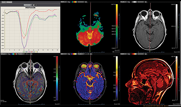 Додаток Brain Tumor пропонує автоматизовану покрокову обробку, включаючи кількісний мультипараметричний аналіз. Ця програма також включає оптимізований алгоритм корекції витоку контрастної речовини для підвищення точності оцінки DSC MР-перфузії.