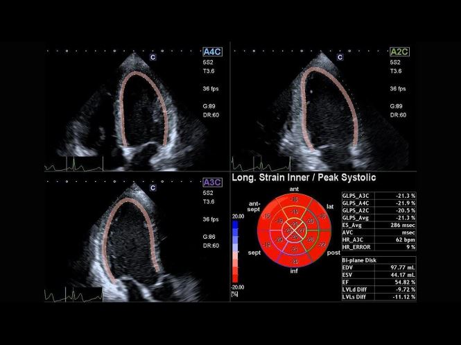 Auto GLS (Global Longnitudinal Strain) (Quick Strain) надає кілька результатів, які можна відобразити за допомогою зрізу/графіка та полярної карти