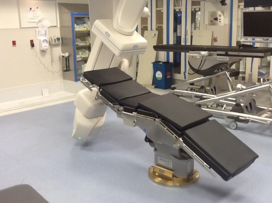 Ця ангіографічна система з кріпленням на стелі спеціально розроблена для використання в операційній кімнаті. С-арка інтегрується з операційним столом та встановлюється в операційній.