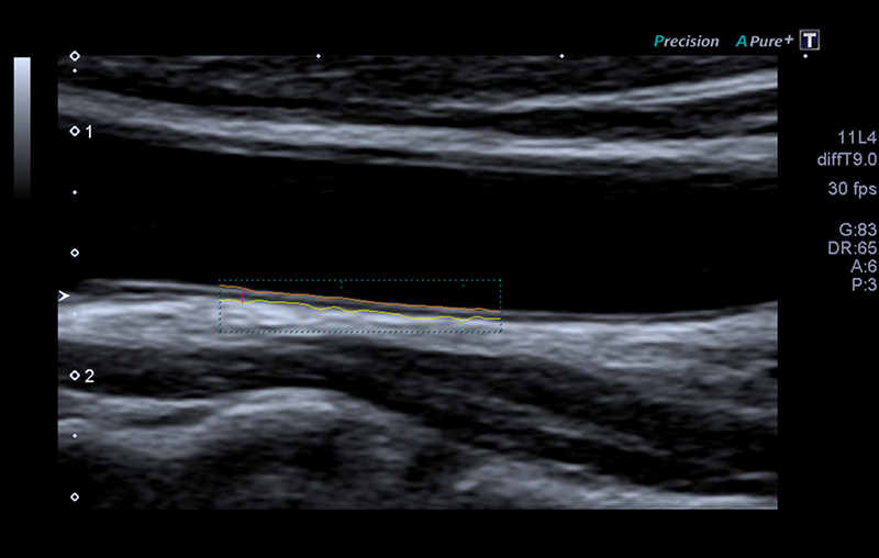 Простий у використанні інструмент автоматичного вимірювання товщини комплексу intima-media (IMT) артеріальної стінки для прогнозування ризику серцево-судинних захворювань.
