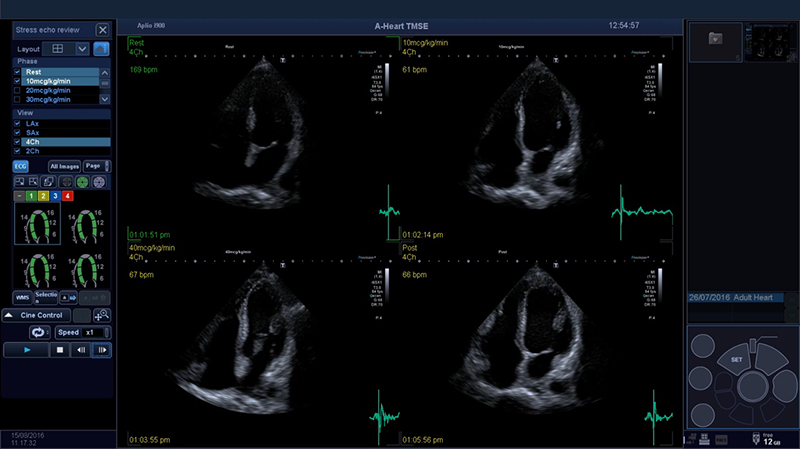 Завдяки стандартним та спеціально-налаштованим користувачем протоколам оцінки фізичного та фармакологічного навантаження, Aplio пропонує комплексний пакет для швидкої та точної оцінки руху стінок.